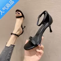 SUNTEK一字带高跟凉鞋女细跟2023夏新款网红黑色时尚百搭气质性感W女鞋