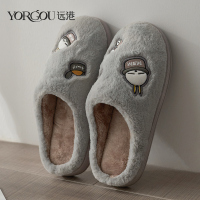 远港男士棉拖鞋家居秋冬季室内防滑厚底居家用保暖毛绒拖鞋女冬天