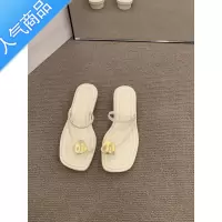 SUNTEK法式小低跟白色套趾凉拖鞋女鞋子2023年新款夏季平底时尚外穿凉鞋