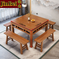 锦北八仙桌家用四方桌中式正方形餐桌椅组合 120cm单桌长凳花梨色