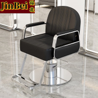 锦北理发椅美发凳发廊专用升降可放倒剪发椅黑色银不锈钢圆盘(粗泵)
