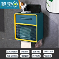 敬平卫生间纸巾盒厕所抽纸盒卫生纸厕纸卷纸盒置物架防水免打孔挂壁式 蓝黄双层-[免打孔 抽纸卷纸通用 可置垃圾袋浴室置物架