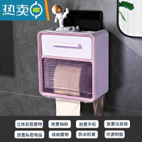 敬平卫生间纸巾盒厕所抽纸盒卫生纸厕纸卷纸盒置物架防水免打孔挂壁式 紫色双层-[免打孔 抽纸卷纸通用 可置垃圾袋浴室置物架