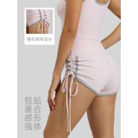 新款抽绳运动短裤蜜桃撞色高腰紧身跑步训练健身瑜伽裤女