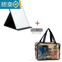 敬平日式小镜子化妆镜便携学生宿舍桌面可立办公室梳妆镜折叠随身小型 化妆镜--大号(黑色)+大号方形化妆包(淡灰便携式用镜