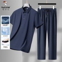 啄木鸟爸爸套装夏季薄款短袖弹力中年男装冰丝衣服休闲运动两件套