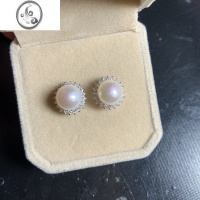 JiMi[晨露二代]正圆淡水珍珠耳环女S925银针法式百搭气质 8-9mm
