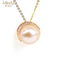 • 梦克拉 18K金钻石珍珠圆环吊坠 强光 海水珍珠吊坠 镶钻珍珠吊坠 掌上明珠 银项链 金珠黑珍珠
