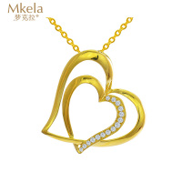 梦克拉 18K金群镶钻石吊坠 心形 桃心 金色双心项链心形吊坠 恋语