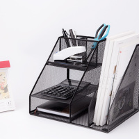 广博 (GuangBo) 金属网状多功能文件框/文件筐/带笔筒收纳架办公用品 黑 WZ9316