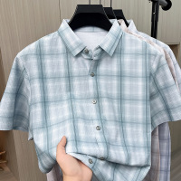 春秋男士衬衫免烫磨毛长袖格子中老年人宽松商务休闲衬衣