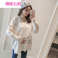 锦铭七玥2018韩版孕妇毛衣宽松中长款圆领时尚百搭针织衫上衣孕妇装