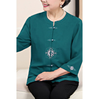 奶奶装夏装套装上衣裤子秋装妈妈装长袖雪纺衫两件套老年人女衬衫