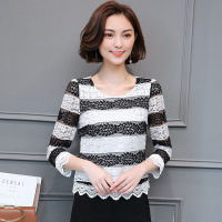 珂依舍2017秋装新款2017新款秋装镂空蕾丝衫女短款小衫显瘦打底衫