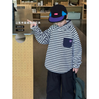 童酷男童冬款山系贴标贴袋宝宝上衣一体绒条纹连帽儿童卫衣潮