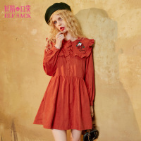 妖精的口袋-时刻亲密秋装2017新款刺绣高腰A字连衣裙女短裙子