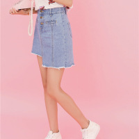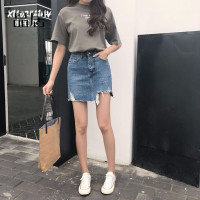 2017新款2017春季新款包臀百搭牛仔半身裙女学生韩版不规则浅色牛仔短裙潮
