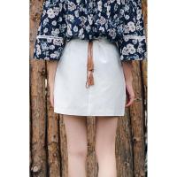 夏装新款女韩版潮系带白色高腰半身裙女夏a字裙短裙刺绣百搭