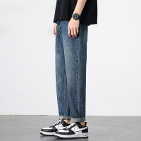 通勤风学生锥形牛仔裤男士复古蓝长裤男宽松水洗卷边基础款