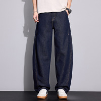 高街潮男宽松牛仔裤原色丹宁明线设计大码阔腿直筒工装长裤男
