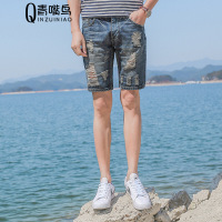 步来褶惠2017夏季港风短裤男韩版磨破新款修身潮男透气个性休闲短款牛仔裤蓝色夏