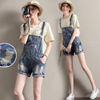 薇侣2017实拍牛仔背带短裤女夏学生韩版破洞学院风宽松显瘦连体裤女