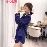 锦铭七玥2018维密女款春夏季短袖短裤韩版学院风滚边拼色真丝睡衣套装