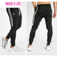 春季新款肌肉兄弟男士休闲裤二条杠男式户外健身运动裤小脚跑步裤