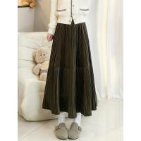 金丝绒半身裙女春秋2026新款高腰a字灰色百褶裙长裙小个子蛋糕裙