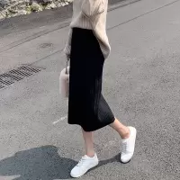 针织半身裙女2026年新款春秋季高腰显瘦中长款黑色一步包臀长裙子