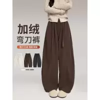 咖色灯芯绒裤女秋冬季加绒加厚高腰宽松显瘦美拉德休闲阔腿裤_550_651