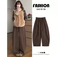 咖色灯芯绒裤女秋冬季新款加绒宽松大码梨形报恩阔腿裤子_563_919