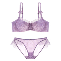 欧美法式薄棉杯文胸透气性感睫毛蕾丝薄款半杯内衣套装大码胸罩
