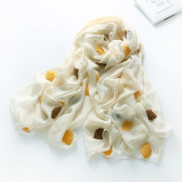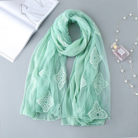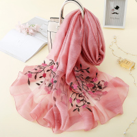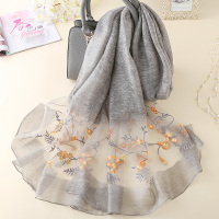2017春夏新品女士韩版羊毛真丝绣花丝巾披肩围巾花朵绣花丝巾