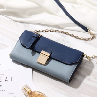 女士单肩包长款女手机包多功能包百搭大气手拿包女 蓝色