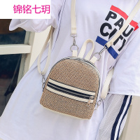 锦铭七玥2018夏季新款草编织女包时尚韩版百搭双肩包休闲旅行小背包妈咪包
