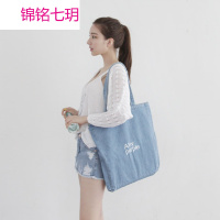 锦铭七玥2018新款时尚牛仔单肩女包大容量环保购物袋妈咪包文艺budai包森
