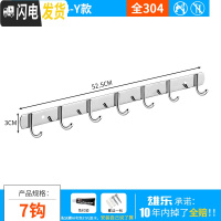 三维工匠免打孔不锈钢304衣服挂衣钩壁挂墙壁卫生间浴室衣帽排钩厨房挂钩 304-Y款-(7钩)