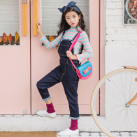 浅娜芬2017童装女童牛仔背带裤秋装新款中大童休闲长裤儿童春秋修身裤子藏蓝色120cm((吊牌120建议身高120cm)