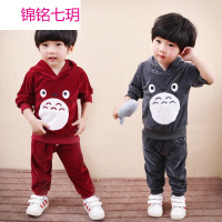 锦铭七玥秋季新款男女宝宝1-2-3岁男女童可爱龙猫带帽长袖卫衣套装外贸潮