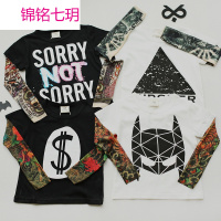 锦铭七玥owlbaby男童假两件花臂T恤17夏装新款纹身长袖T恤儿童上衣打底