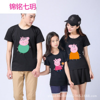 锦铭七玥小猪佩奇亲子装情侣2017新款母子装圆领短袖T恤印花百搭代发