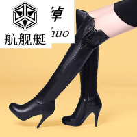 2017新款冬靴真皮过膝长靴子高跟细跟长靴防水台全皮骑士靴子