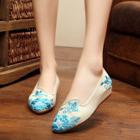2017新款2017帆布鞋老北京女布鞋新款牛筋底坡跟绣花鞋单鞋女鞋广场舞鞋
