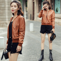 短款pu皮外套春季新款修身小西装长袖机车服夹克上衣皮衣女 红色 M