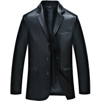 秋冬新品皮衣上衣男纯色西装领纽扣PU皮夹克外套男式机车服韩版帅
