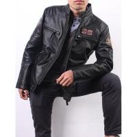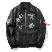 秋冬新品男装上衣男式皮衣pu夹克机车修身潮刺绣贴标装饰外套黑色