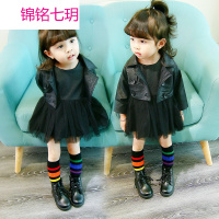 锦铭七玥2018秋季新版女童外套小童儿童休闲皮衣圆领上衣薄款裙子套装代发