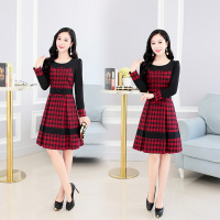 莞馨春秋长袖连衣裙女2017新款韩版气质修身中长款女裙子格子连衣裙秋
