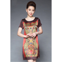 顺崇2018连衣裙子夏装新款加大码印花妈妈装短袖宽松